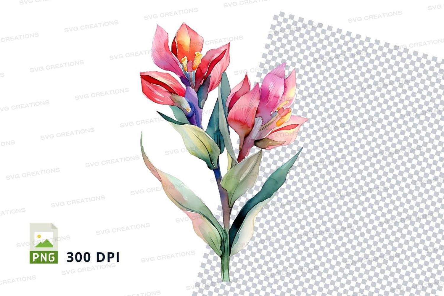 Illustration Watercolor Pink Flowers Purple Bouquet Red Petals Center Tulips