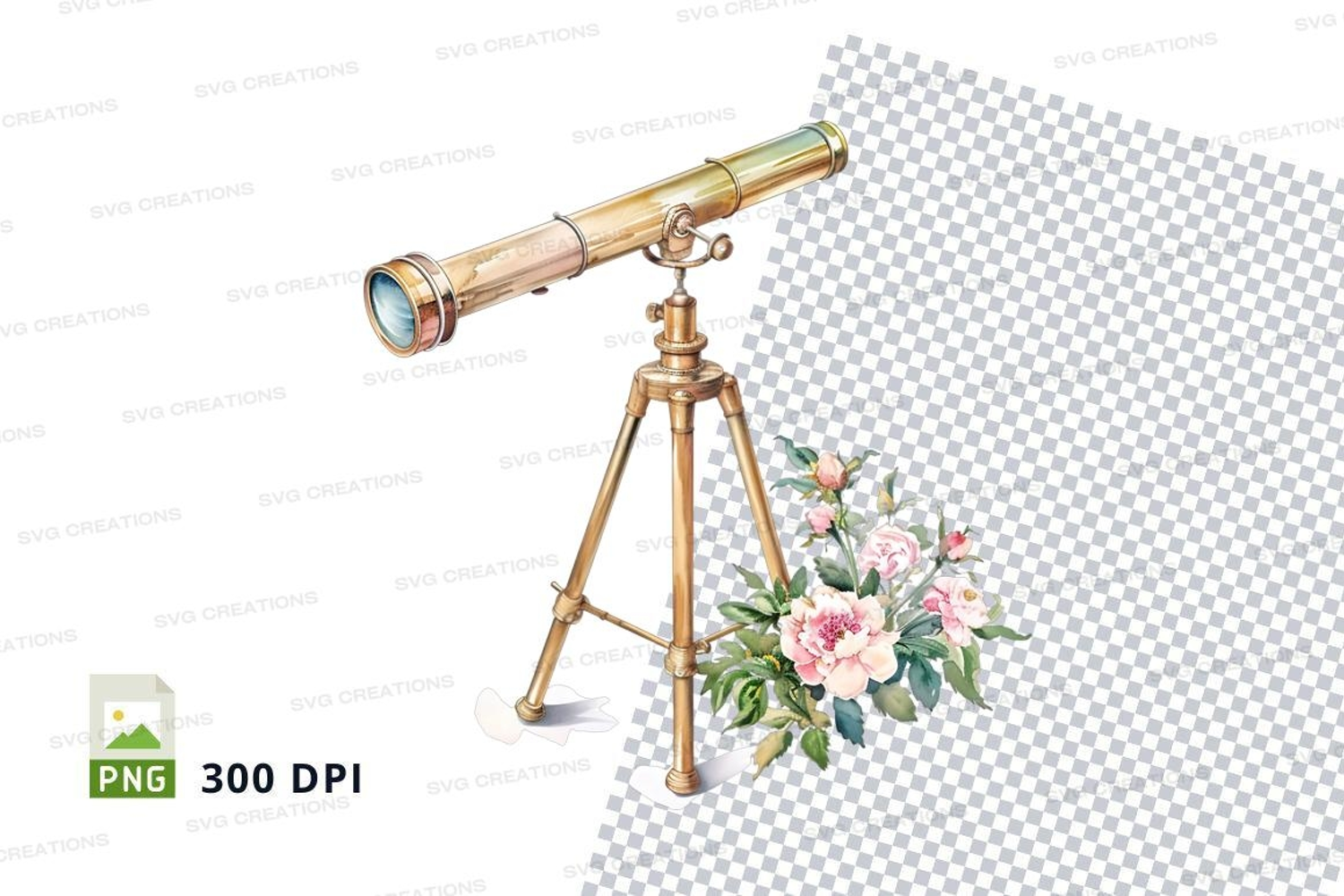 Antique Pink Nature Flowers Feathers Png White Brass Telescope Tripod