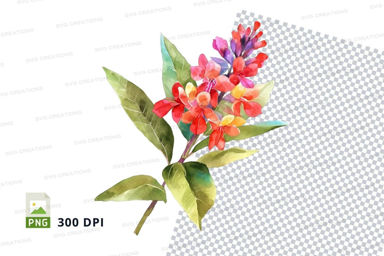 Watercolor Nature Flower Clipart Pink Flowers Botanical Purple Flowers Png Green Leaves Red Flowers