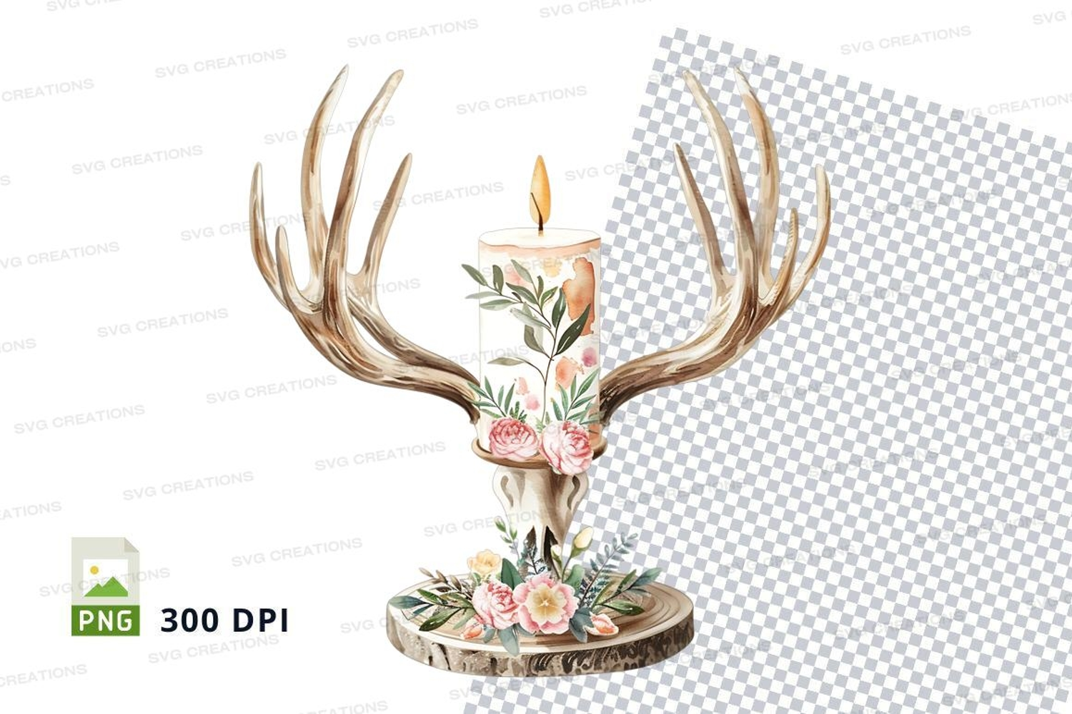 Decorative antler candle holder with floral design