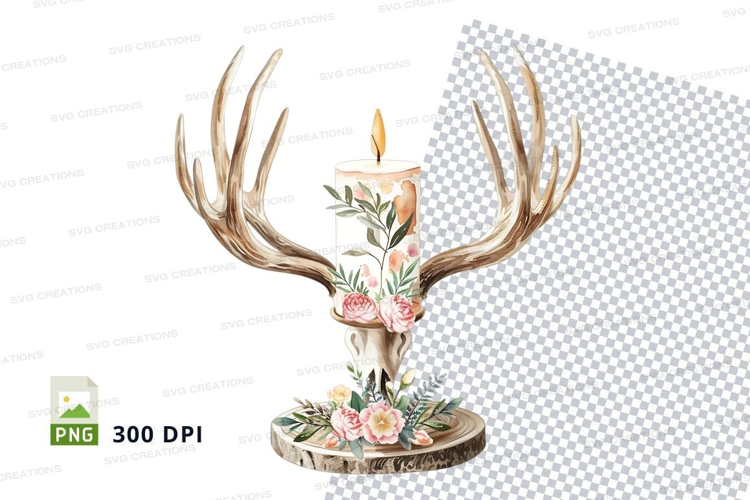Decorative antler candle holder with floral design example image 1