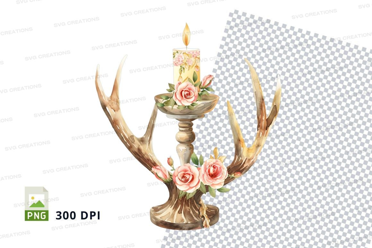 Decorative Rustic Flowers Clipart Antlers Png Roses Candle Blossom Candlestick