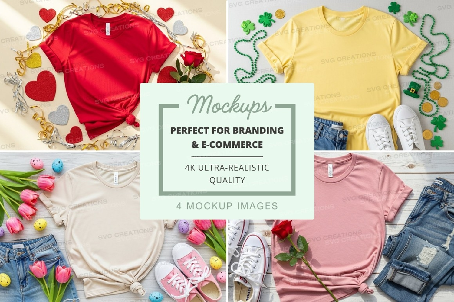 Fashion Holiday T-shirt Pink Mockup Yellow White Red Accessories Decorations