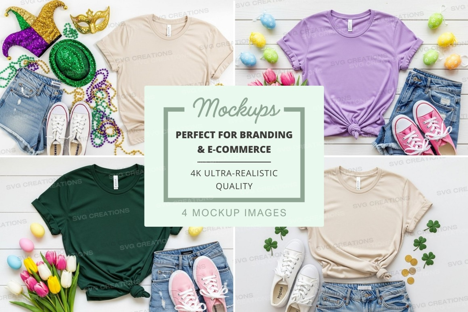 Spring T-shirt Easter Celebration Mockup Accessories Festive Decorations Mardi Gras St Patrick's Day