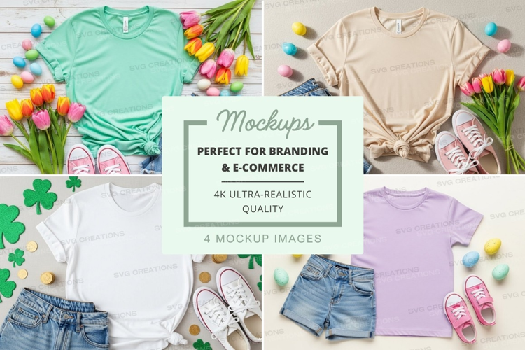 T-shirts Easter Mockup Easter Eggs Pastel Colors Tulips Outfits Spring Fashion Shamrocks Denim Shorts