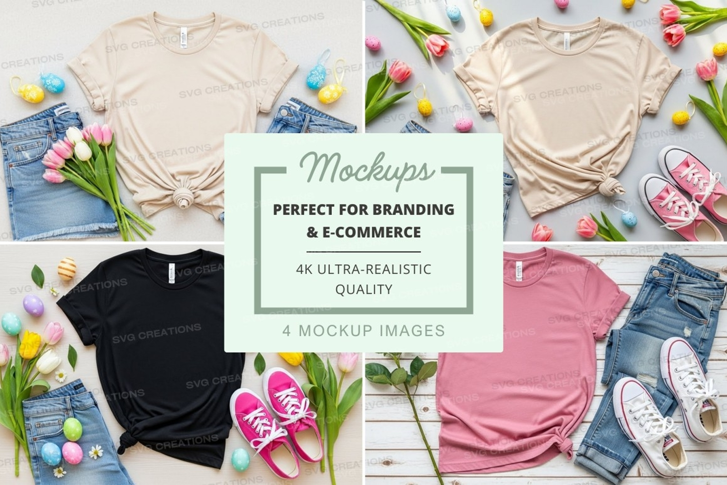 Spring Fashion T-shirt Easter Flowers Mockup Accessories Sneakers Shorts