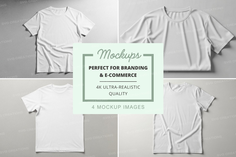 T-shirt Mockup White Blank Front View Side View Back View Plain Background