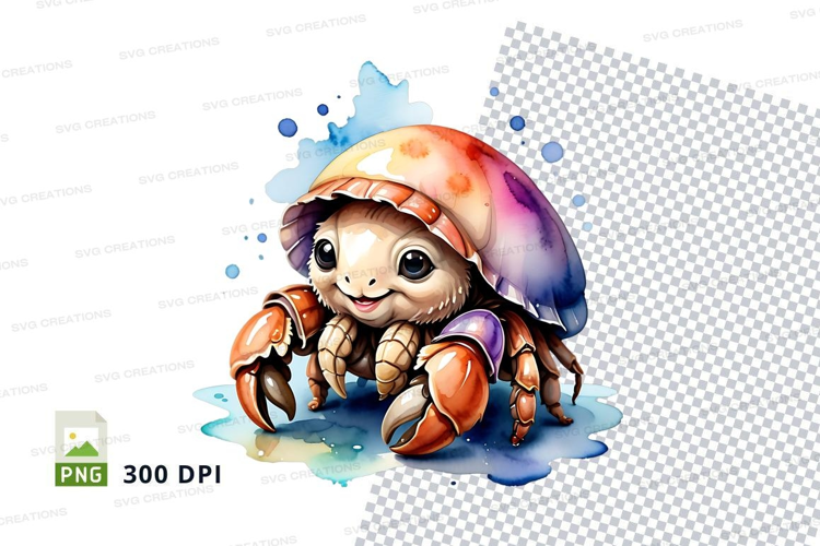 Cartoon Watercolor Cute Friendly Blue Yellow Shell Cheerful Hermit Crab