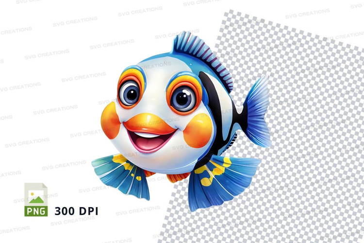Cartoon Animal Happy Fish Sea Orange Blue Yellow Underwater