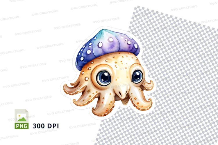 Cartoon Whimsical Friendly Clipart Blue Mustache Hat Octopus Polka Dots Expressive Eyes