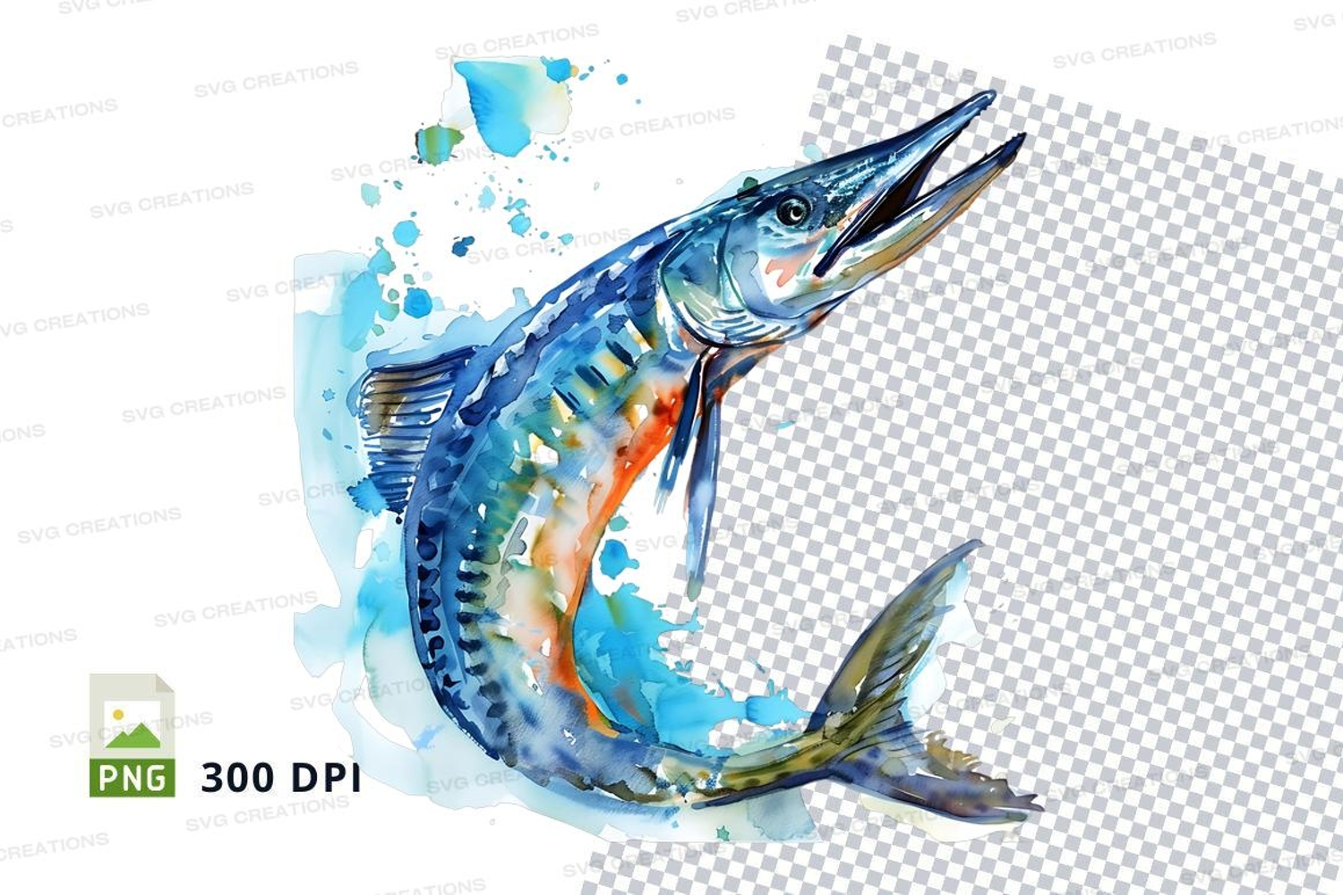 Illustration Watercolor Fish Orange Blue Marine Aquatic
