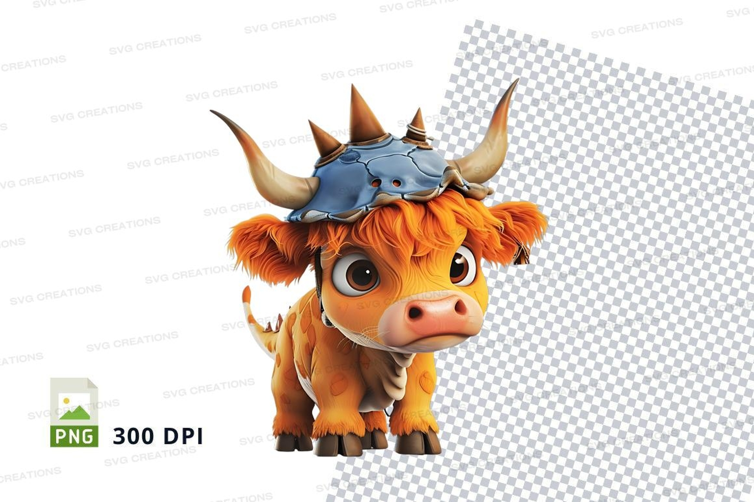 Cartoon Funny Animal Adventure Horns Helmet Cow Determined