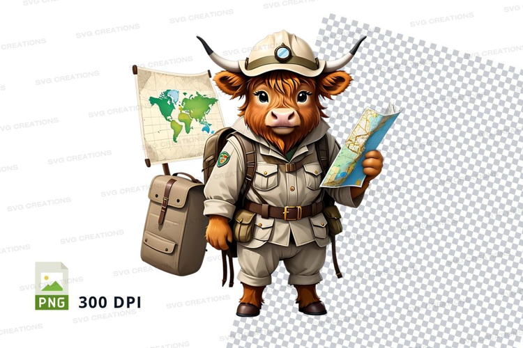 Cartoon Adventure Travel Helmet Map Explorer Backpack Aquarium Tropical Fish Highland Cow