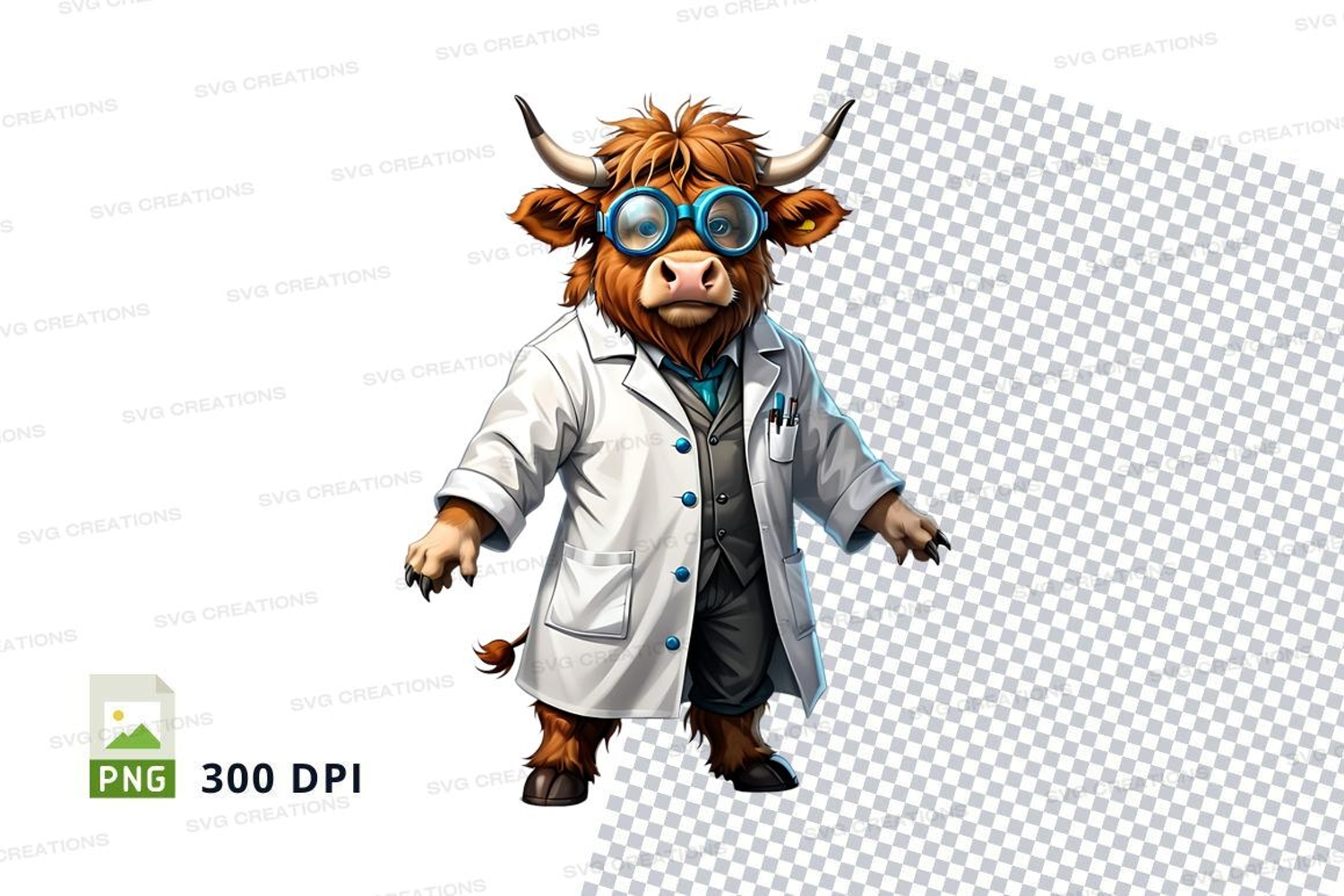 Cartoon Funny Animal Bull Goggles Metallic Aquatic Fin Mad Scientist Lab Coat