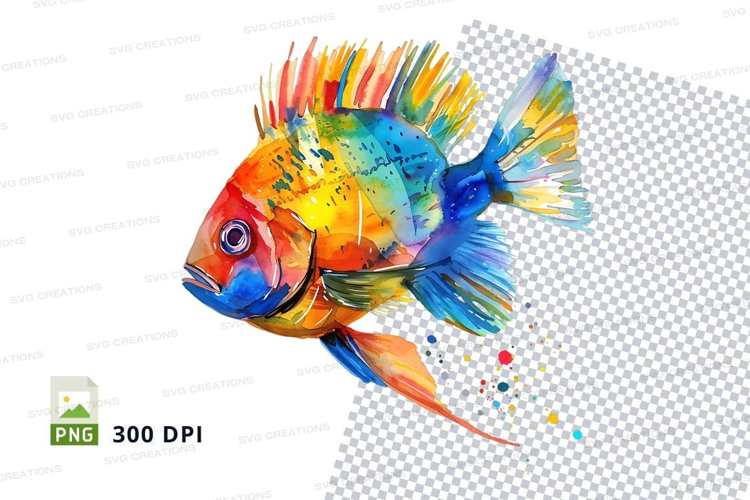 Illustration Watercolor Colorful Artistic Fish Aquatic Marine Life Vest Yeti Clownfish