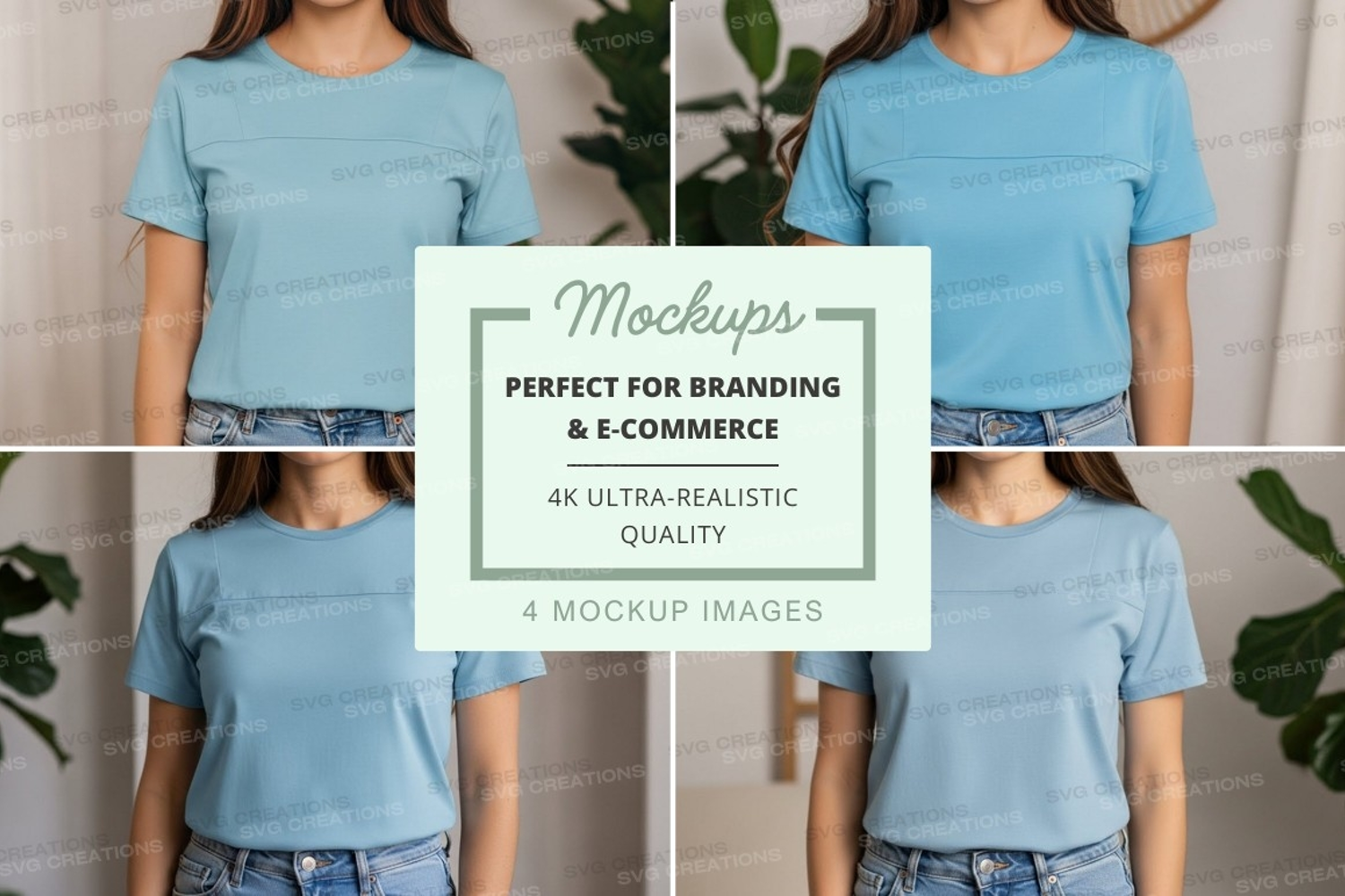 T-shirt Clothing Mockup Jeans Light Blue Greenery Neutral Background