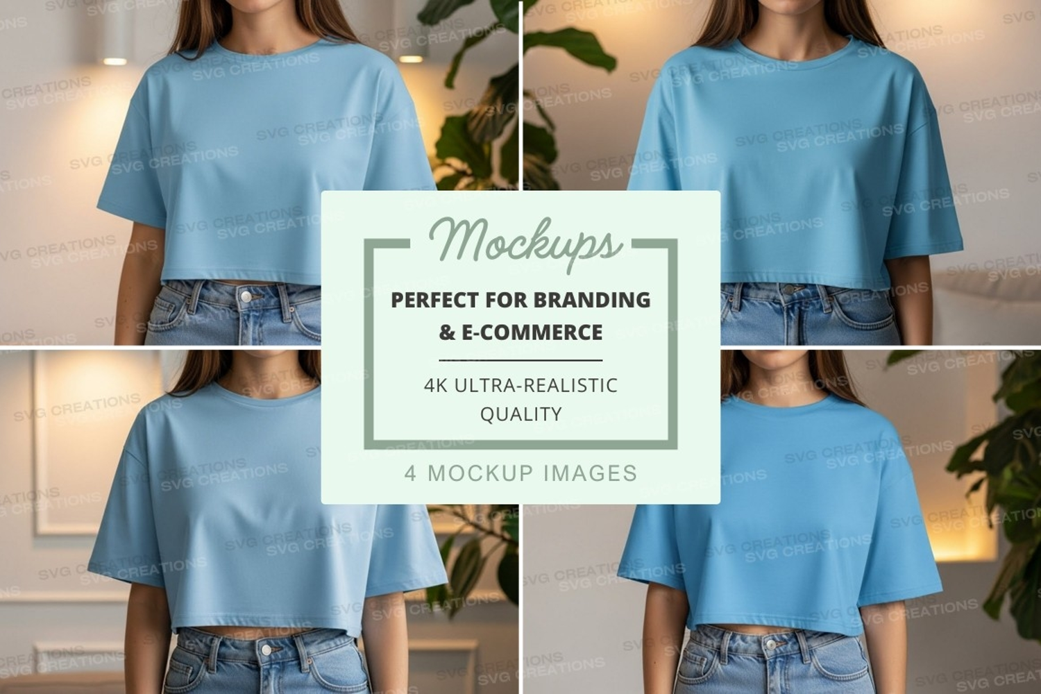 Fashion Design Clothing Mockup Jeans Light Blue Crop Top Casual Wear