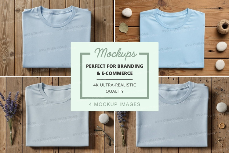 Similar Design Products to Folded light blue t-shirts on wooden background
