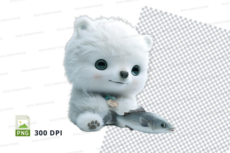 Cute polar bear with fish example image 1