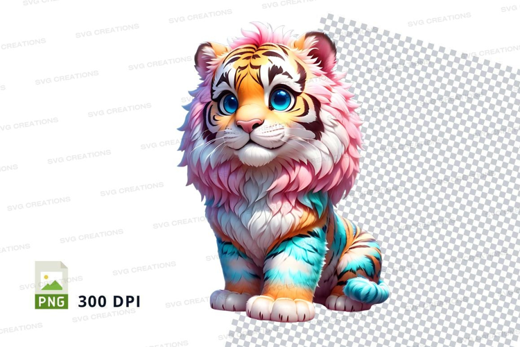 Illustration Cartoon Animal Fantasy Cute Colorful Multicolored Tiger Cub Blue Eyes