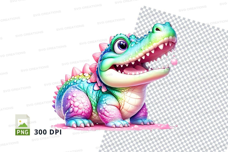 Cartoon Funny Animal Pink Friendly Colorful Teeth Sitting Rainbow Crocodile