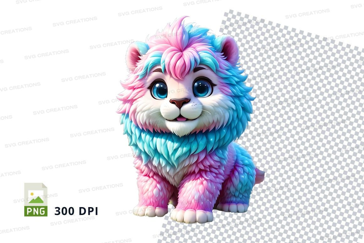 Cartoon 3d Cute Pink Happy Colorful Cat Turquoise Furry Blue Eyes