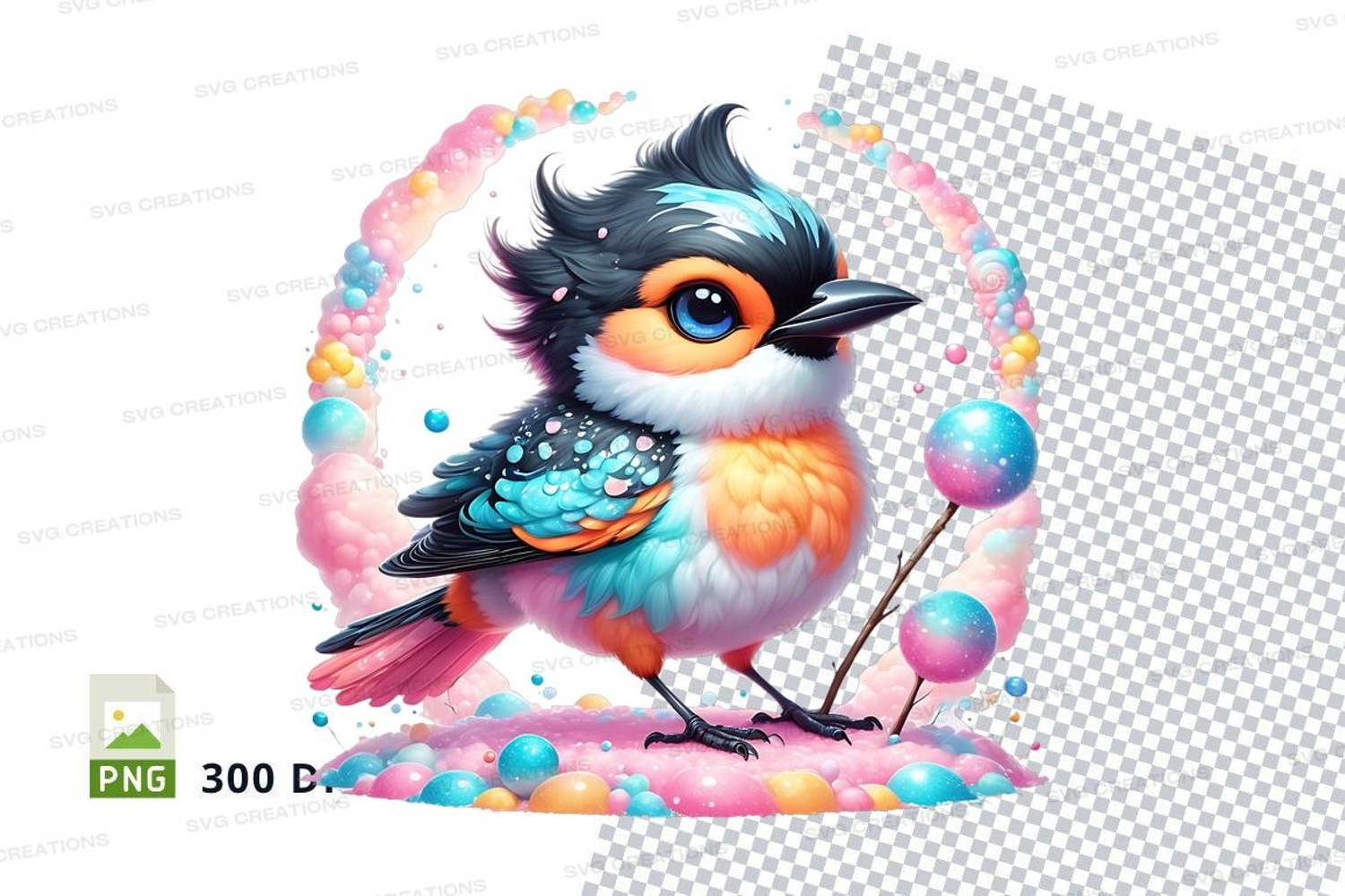 Illustration Cartoon Animal Whimsical Nature Colorful Bird Feathers Bubbles Pastel
