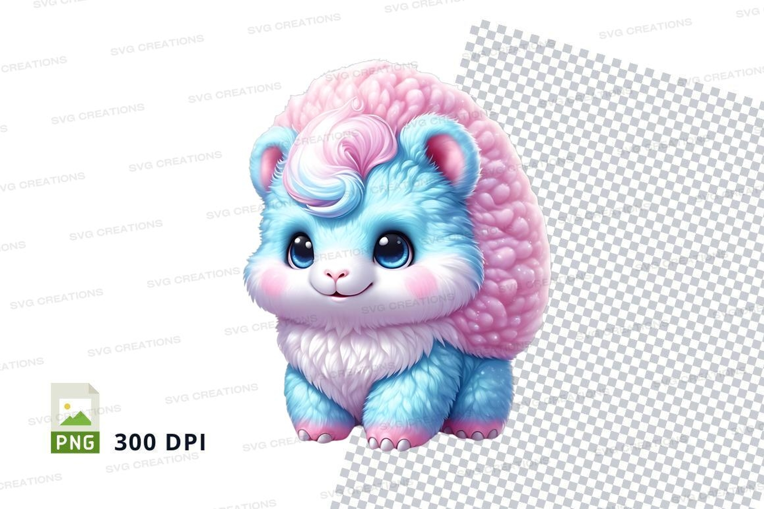Cartoon Animal Playful Cute Pink Blue Furry Large Eyes