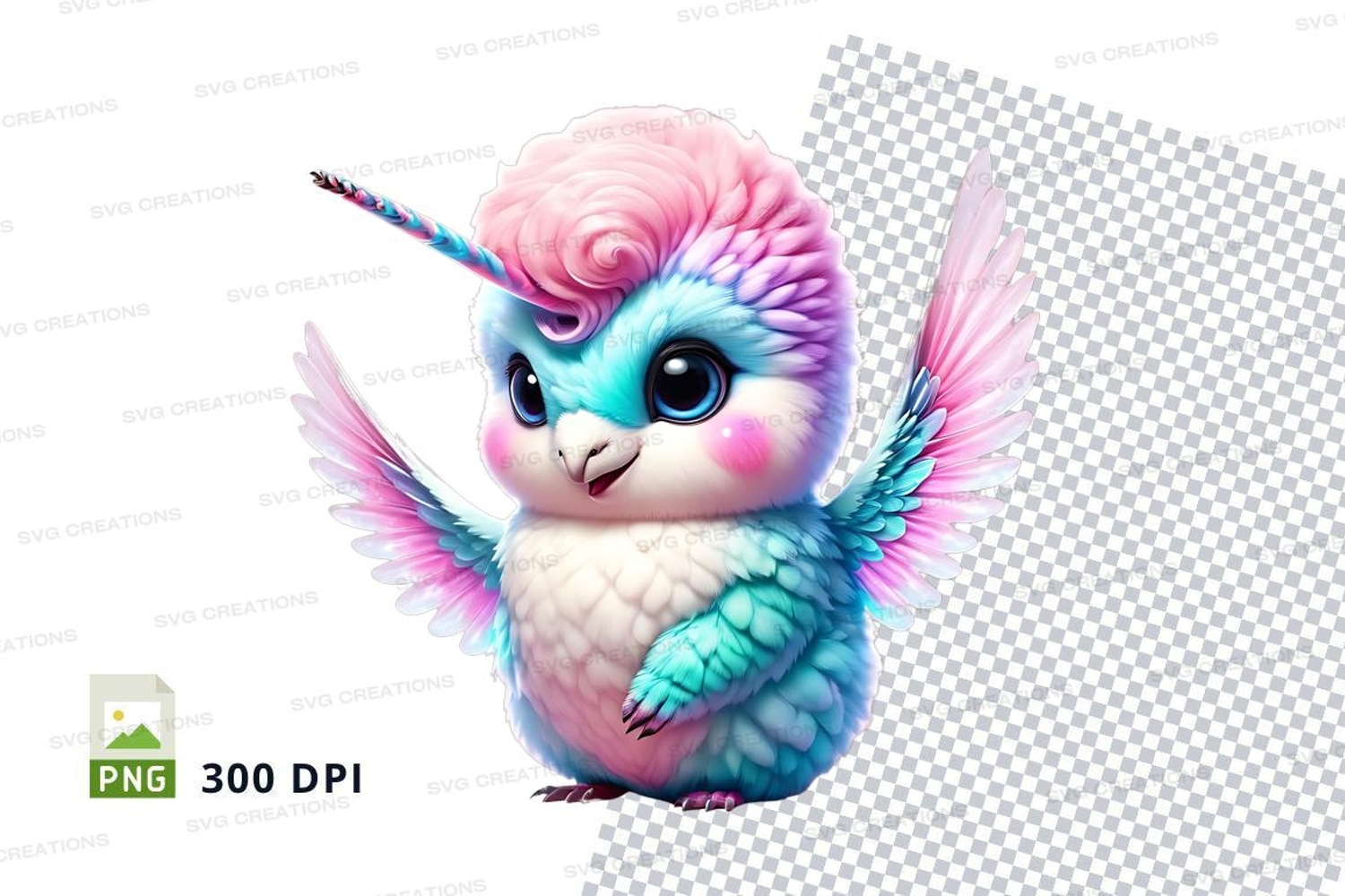 Cartoon Whimsical Clipart Pastel Colors Unicorn Horn Large Eyes Spread Wings Magical Creature Fantasy Owl Unicorn Owl