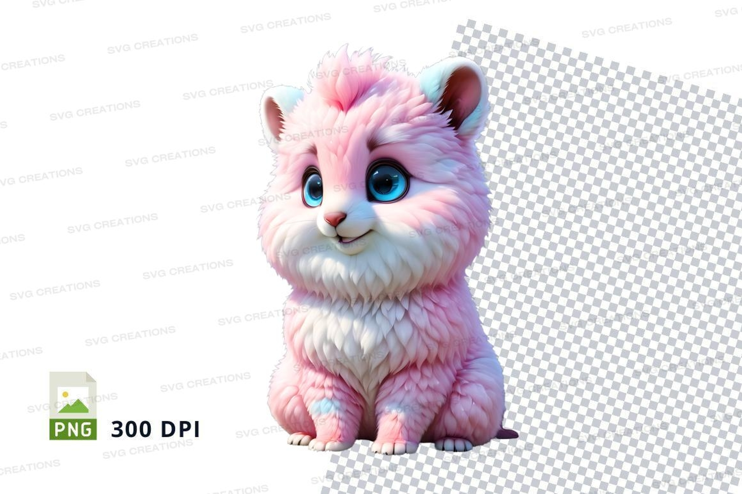 Cartoon 3d Animal Cute Pink Clipart Kitten Blue Eyes