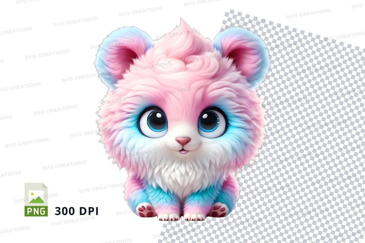 Cartoon Animal Whimsical Cute Pink Blue Cat Furry Large Eyes