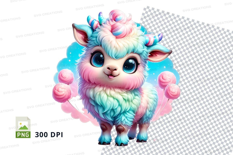 Cartoon Animal Fantasy Whimsical Cute Pastel Fluffy Cotton Candy Lamb Blue Eyes