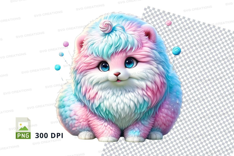 Illustration Cartoon Whimsical Cute Pink Blue Bubbles Cat Pastel Furry