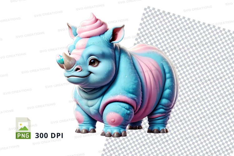 Illustration Cartoon Funny Animal Whimsical Candy Pink Blue Rhinoceros