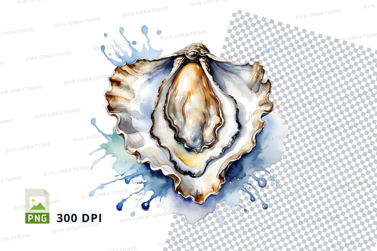 Open oyster with watercolor splash