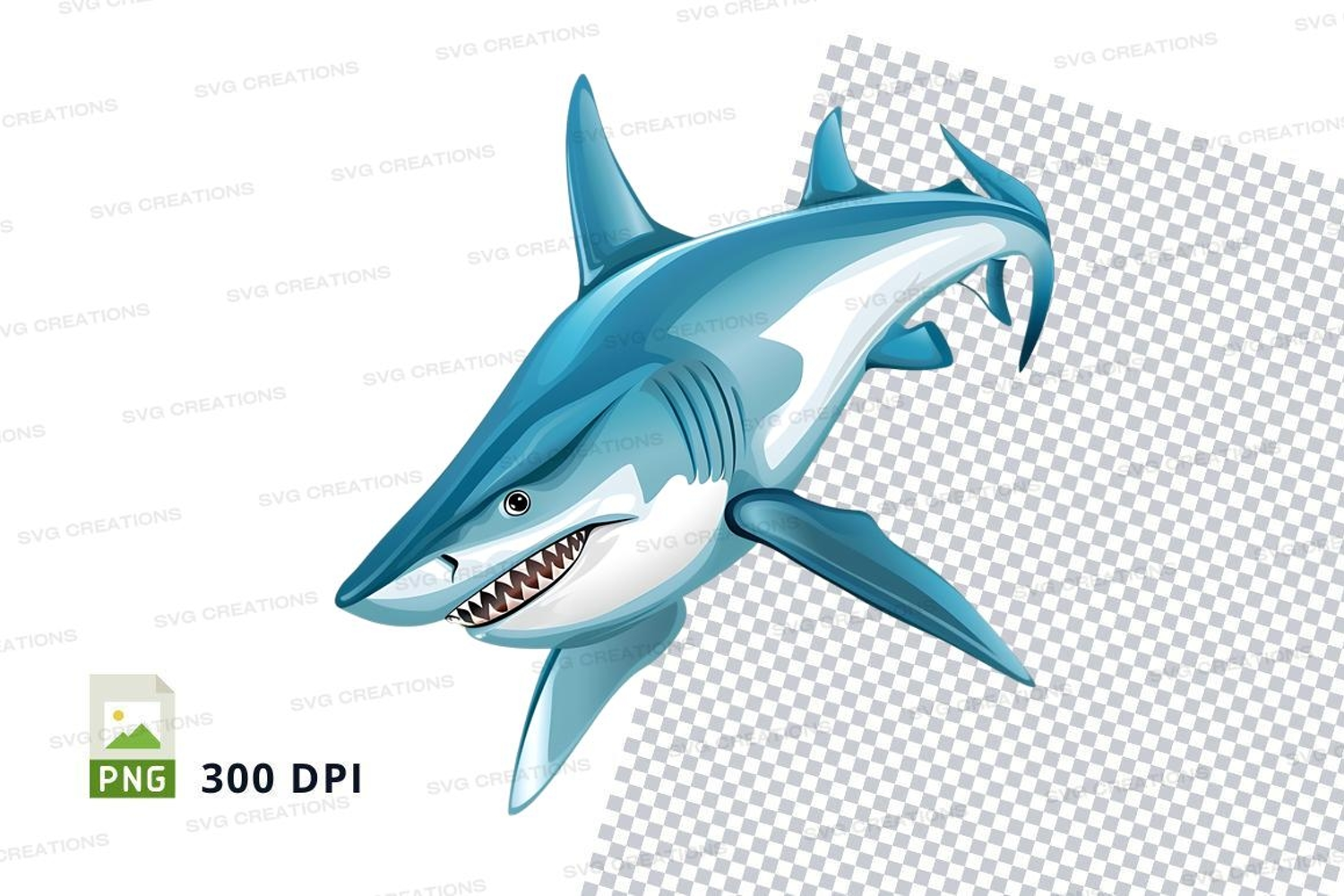 Cartoon Animal Friendly Fish Sea Blue Teeth Shark Ray Fish