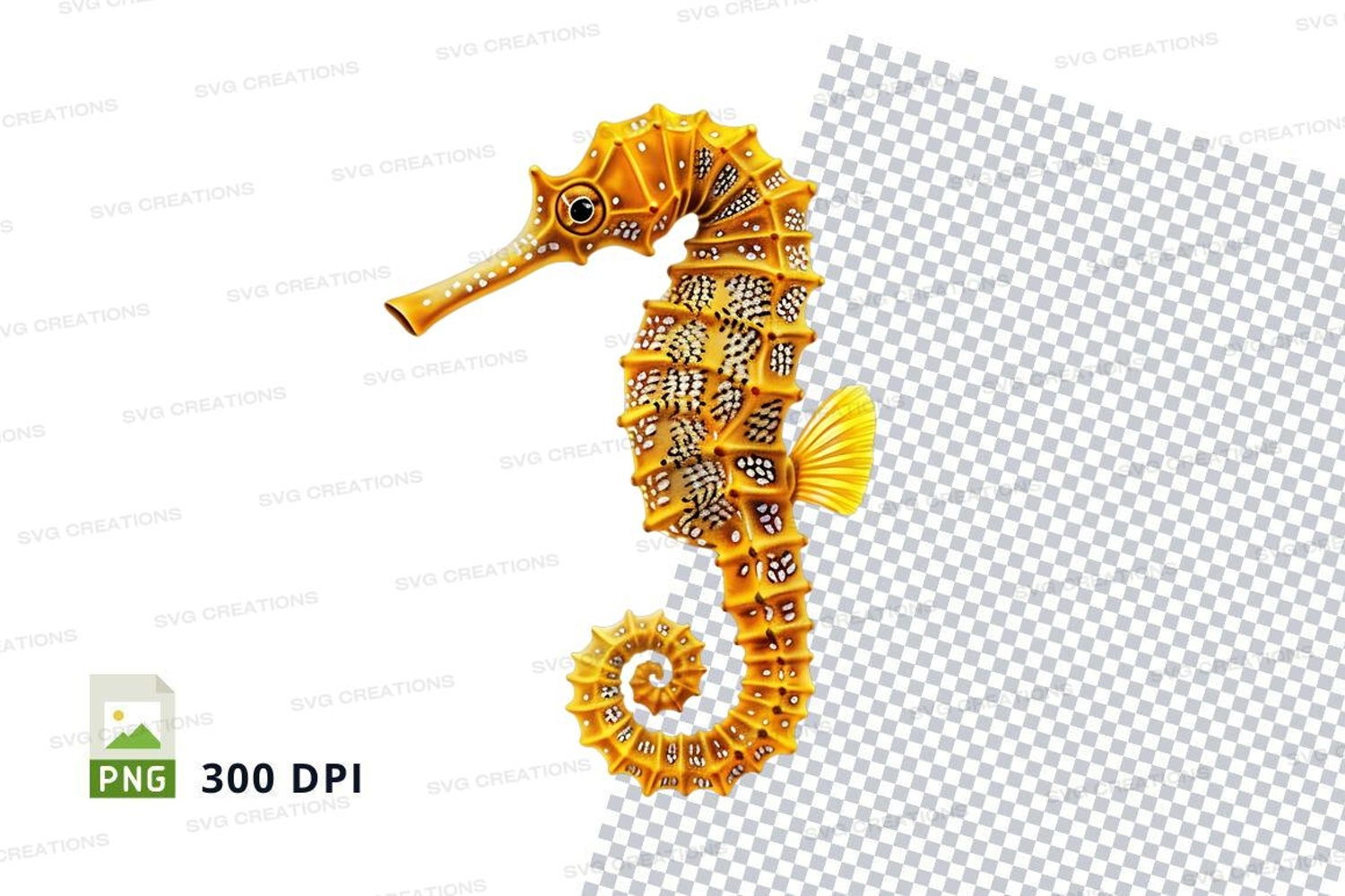 Illustration Cartoon Pattern Yellow Seahorse Spikes Aquatic Marine Life Tail Curled