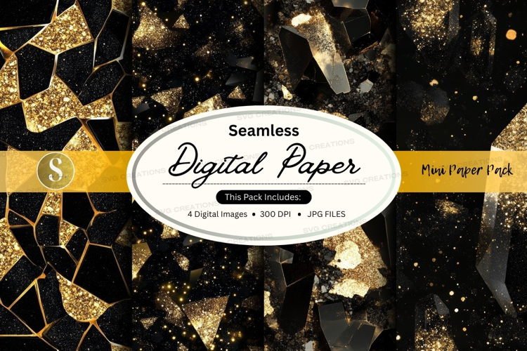 Geometric Gold Pattern Seamless Glitter Luxurious Sparkles Intricate Dark Background