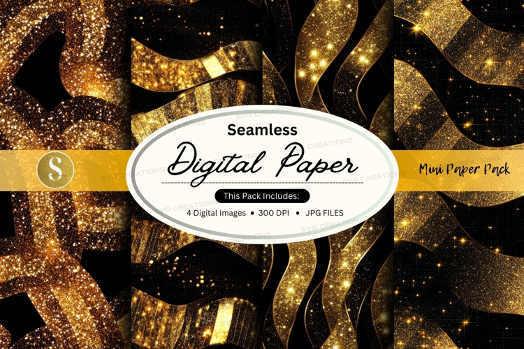 Gold Elegance Luxury Abstract Pattern Seamless Glitter Wavy Sparkling Dark Background