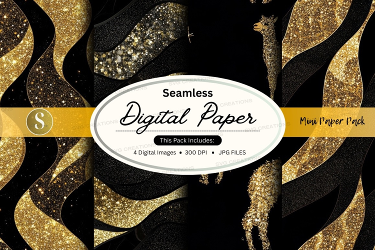 Gold Luxury Giraffe Glitter Seamless Pattern Black Background Golden Accents