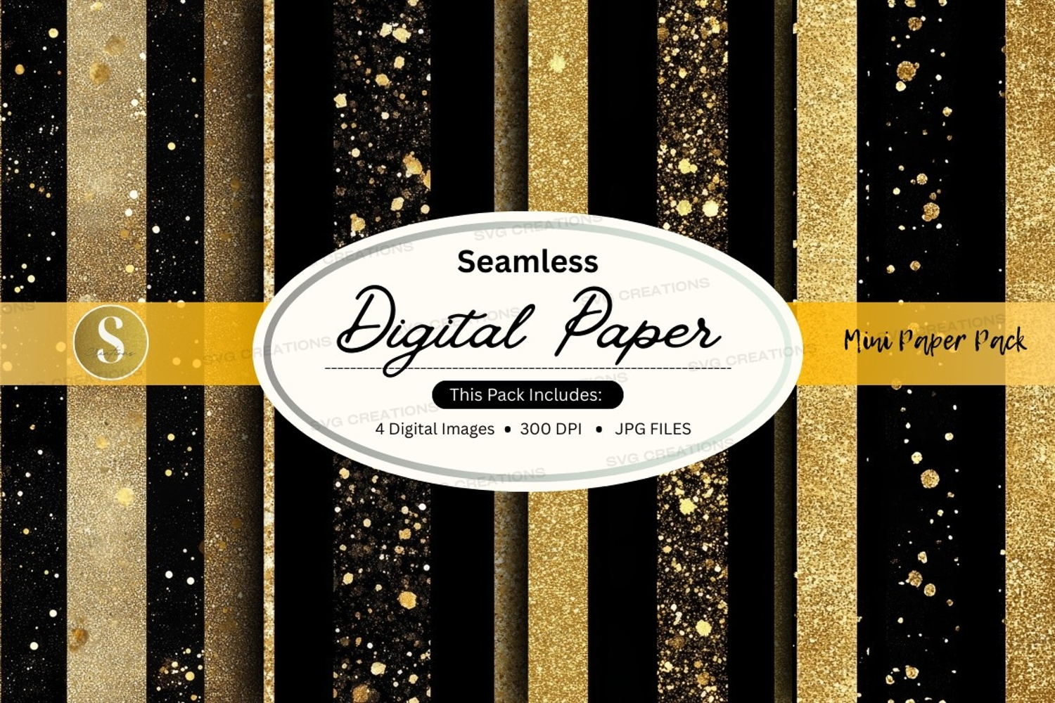 Gold Black Gradient Pattern Background Seamless Stripes Sparkles