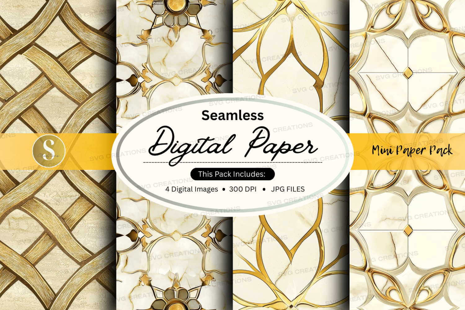 Decorative Gold Design Pattern Digital Paper Background Seamless White Jpeg 300 Dpi
