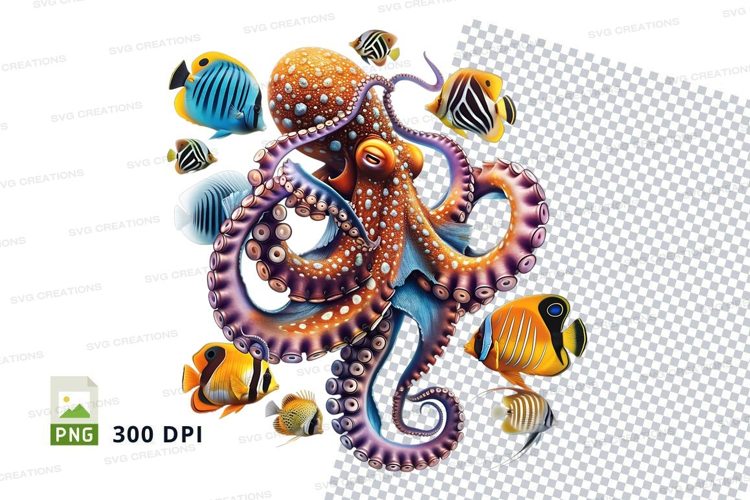 Colorful Clipart Png Underwater Octopus Marine Life Tropical Fish