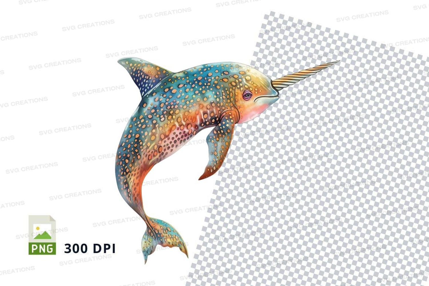 Illustration Whimsical Colorful Clipart Sea Creature Tusk Narwhal Dynamic Pose