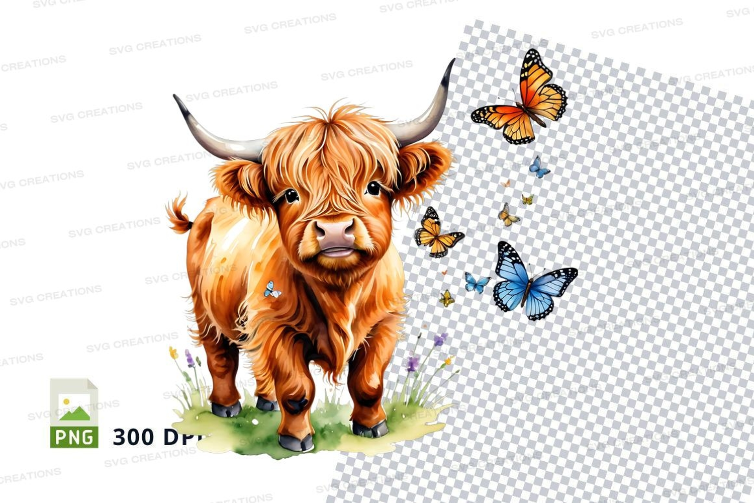 Illustration Animals Nature Clipart Cow Butterflies Highland Cow