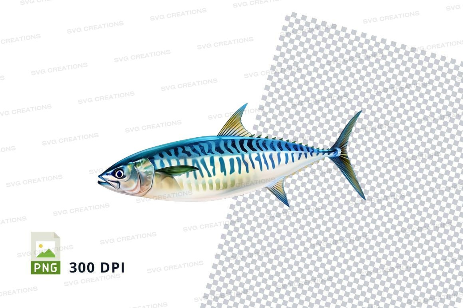 Illustration Fish Clipart Blue Stripes Silver Aquatic Marine Life Seafood Mackerel