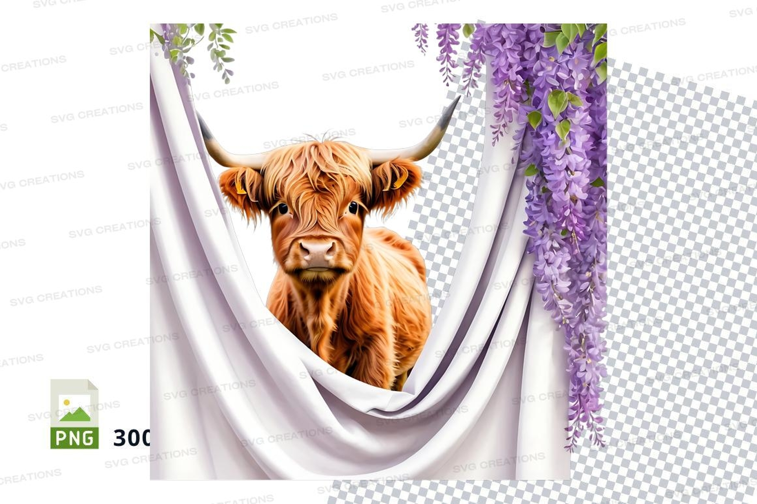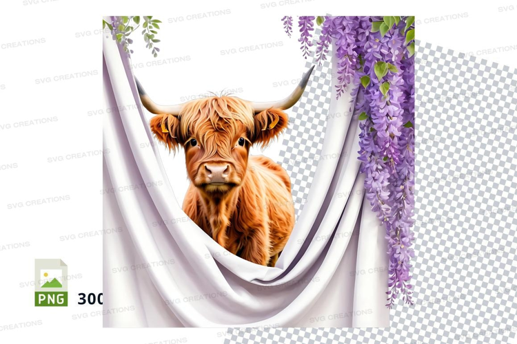 Highland cow with wisteria example image 1