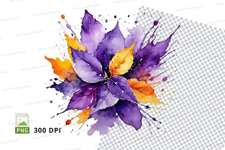Illustration Watercolor Artistic Splash Autumn Leaves Purple Orange Yellow Visual