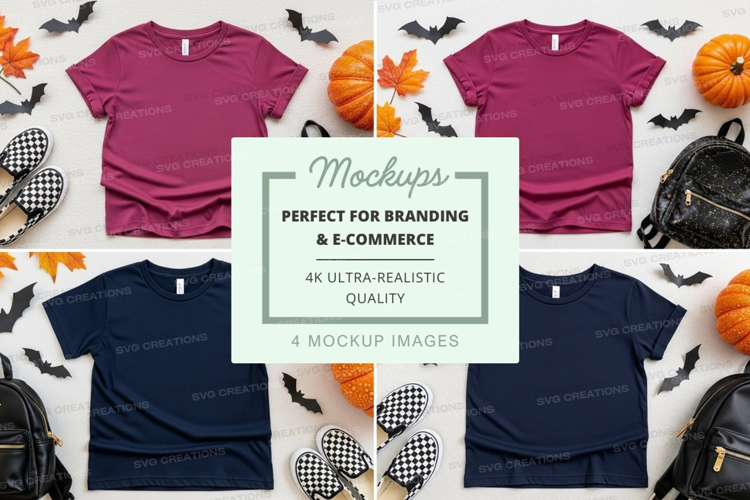 Halloween T-shirt Leaf Mockup Autumn Bat Pumpkin Backpack Accessories Flat Lay