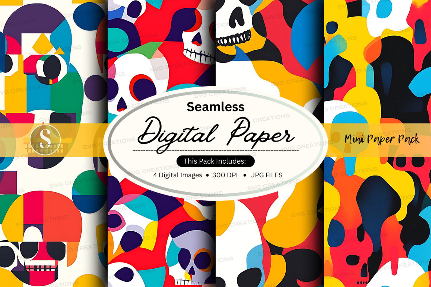 Skull Colorful Graphic Design Pattern Digital Paper Seamless Scrapbooking Digital Art